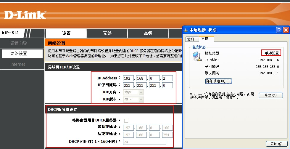 5、登錄進入輔的DIR-612-B(默認密碼為空),電腦自動獲取IP,如圖: