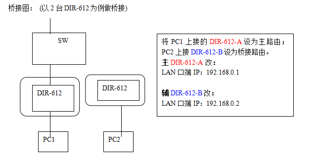 橋接圖: (以2臺DIR-612為例做橋接) 實驗步驟: 1、登錄進入主的DIR-612-A(默認密碼為空),電腦讓它自己獲取IP,如圖: 2、設(shè)置主的DIR-612-A的無線參數(shù),如圖: 3、設(shè)置DIR-612-A的無線中繼,...